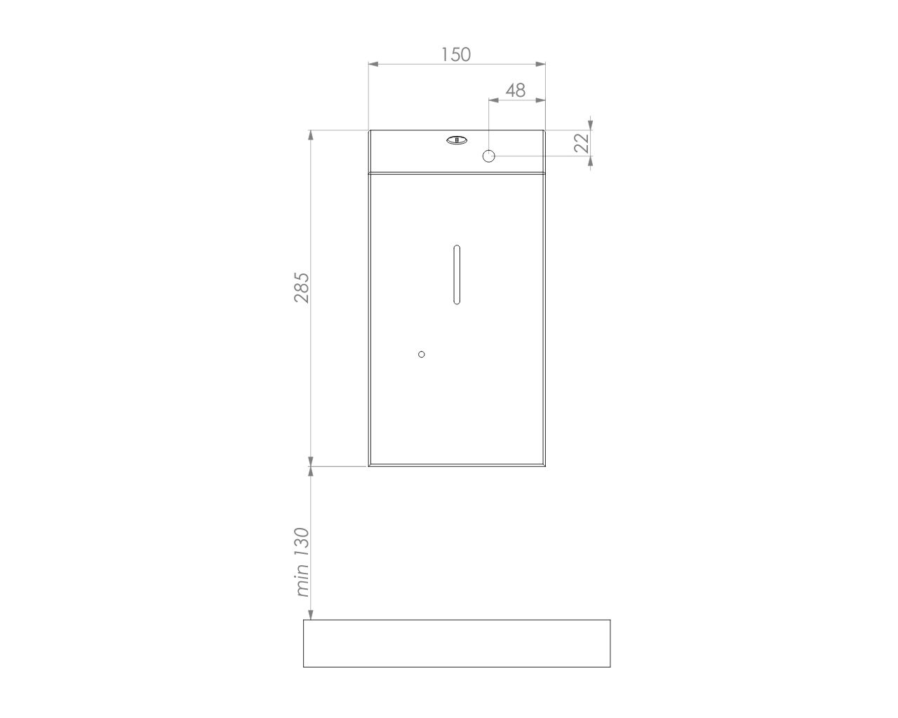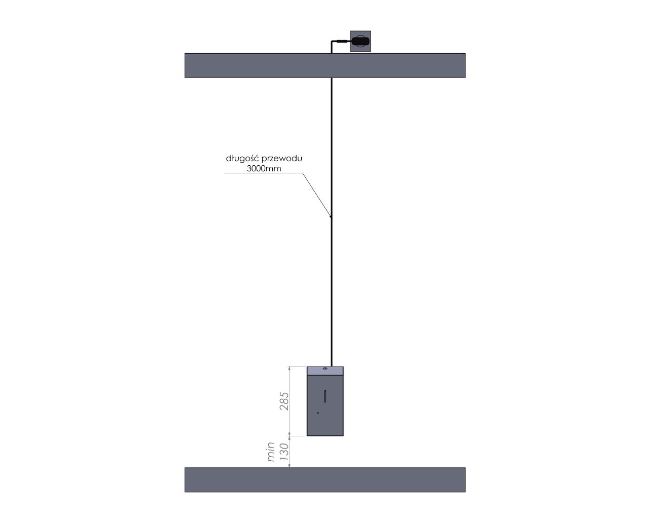 – dozownik należy zamontować w odległości min. 130 mm od powierzchni blatu lub umywalki