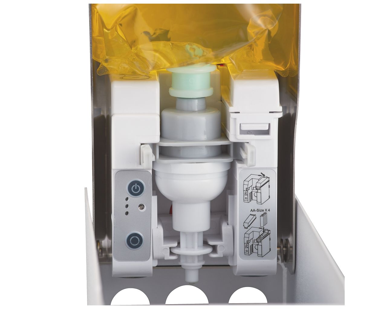 – możliwość ustawienia pojedynczej – 0,4 ml, podwójnej – 2 x 0,4 ml lub potrójnej 3 x 0,4 ml porcji mydła przez jedno, dwa lub trzy naciśnięcia przycisku wybrania dozy