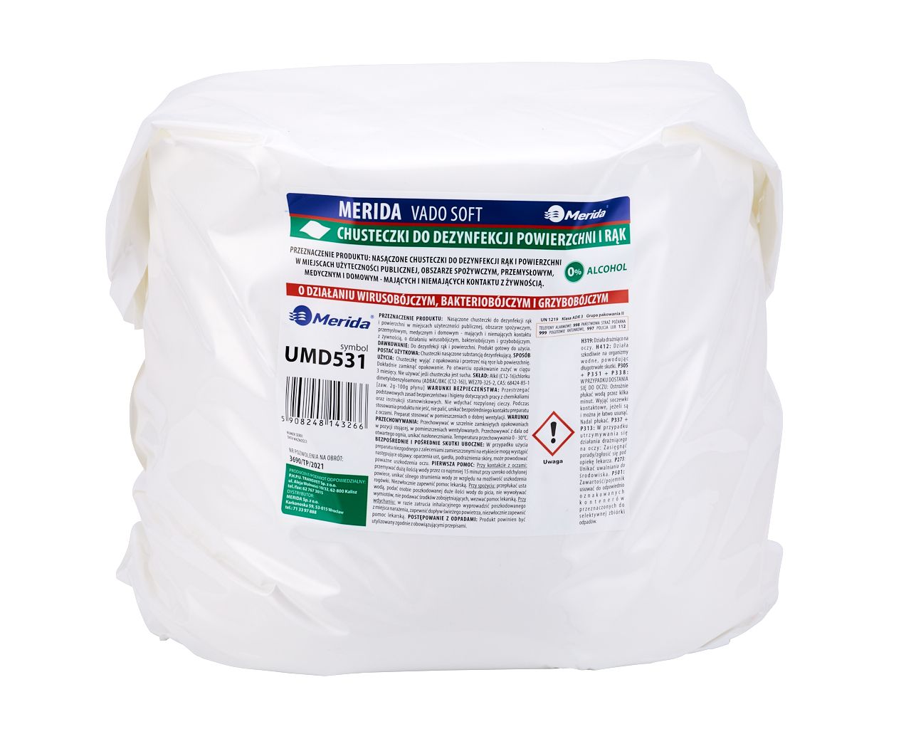 NowośćChusteczki nasączone do dezynfekcji rąk i powierzchni MERIDA VADO SOFTbezalkoholowe, wiadro 10 l, rolka 122,36 m322 listkiSymbol: UMD832197,00 zł