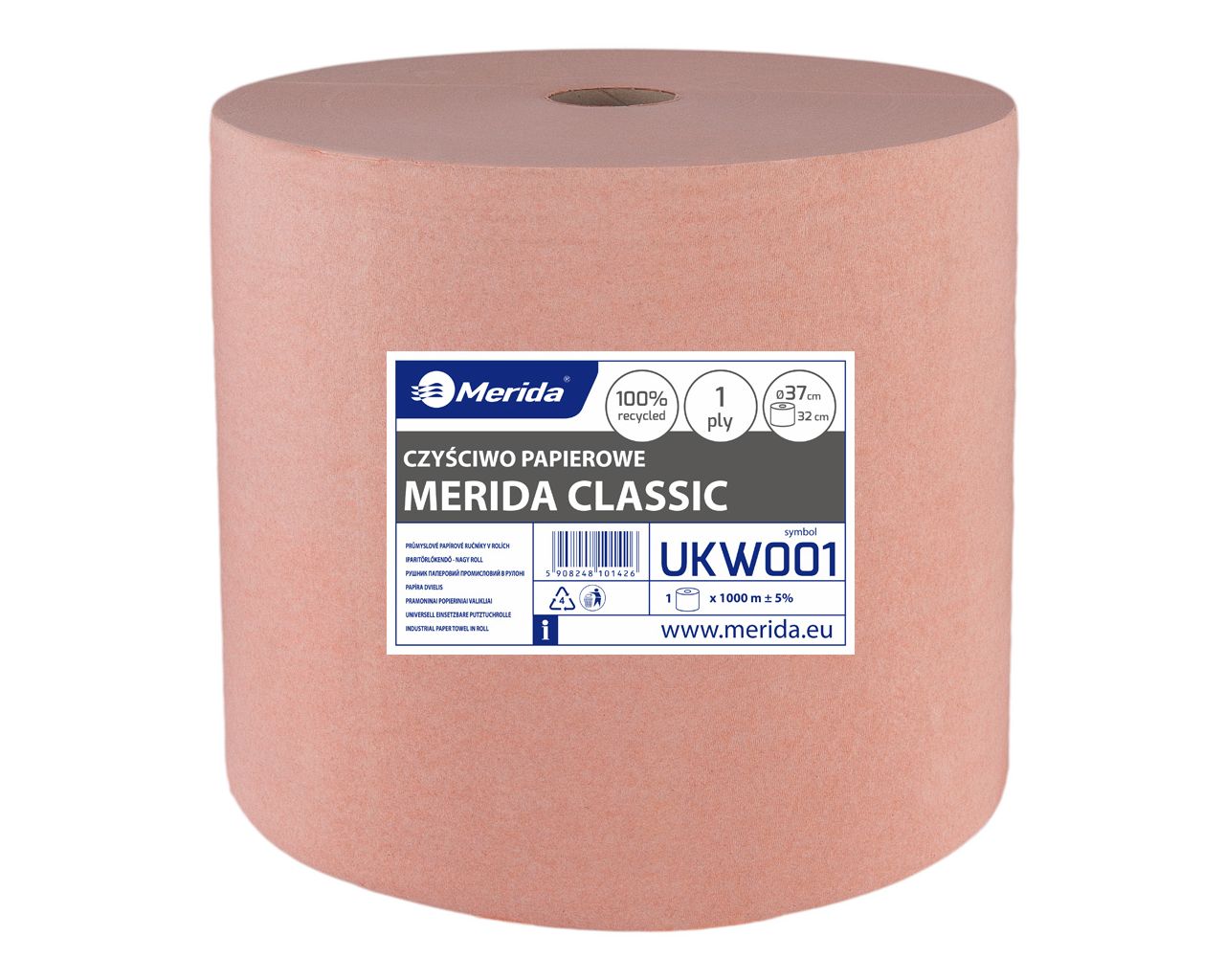 Czyściwo papierowe MERIDA CLASSIC 37 (UKW001) to długa rolka 1000 m do intensywnego użytku w miejscach, gdzie papier schodzi szybko: produkcja, warsztat, magazyn, serwis, utrzymanie ruchu i sprzątanie techniczne. Wersja jednowarstwowa z makulatury w kolorze jasnobrązowym jest nastawiona na praktykę i ekonomię — duży zapas na rolce oznacza rzadsze wymiany i mniej przestojów. Sprawdzi się do przecierania powierzchni, zbierania rozlanych płynów oraz typowych zabrudzeń roboczych (woda, oleje, tłuszcze, smary). To produkt „roboczy” — prosto, wydajnie i bez kombinowania.