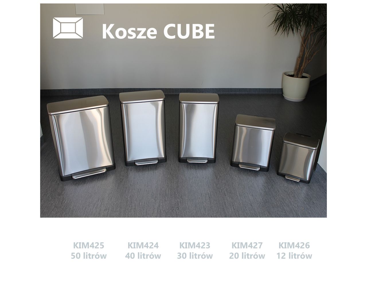Kosz prostokątny CUBEpojemność 30 lstal matowa