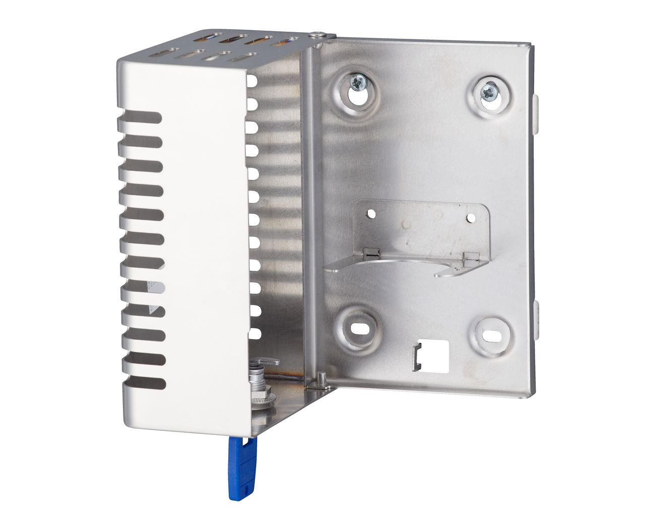 wymuszoną jedynie przez naturalną cyrkulację powietrza w pomieszczeniu (bez baterii, bez aerozoli, bez emisji szkodliwych gazów). Wykonany ze stali nierdzewnej szczotkowanej (matowej). Zabezpieczony trwałym stalowym zamkiem bębenkowym,  zamek zlicowany z powierzchnią urządzenia. Łączenia boków spawane i szlifowane, niewidoczne zawiasy. Zamykany na kluczyk. Możliwość montażu na ścianie lub używania jako urządzenie wolnostojące.
