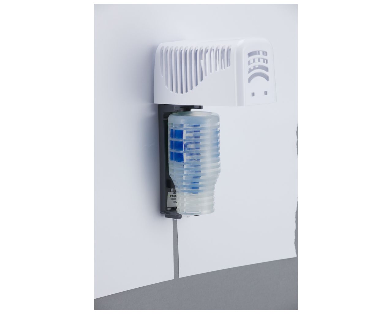wymuszoną jedynie przez naturalną cyrkulację powietrza w pomieszczeniu (bez baterii, bez aerozoli, bez emisji szkodliwych gazów). Wykonany z białego tworzywa sztucznego. Możliwość montażu na ścianie lub używania jako urządzenie wolnostojące.
