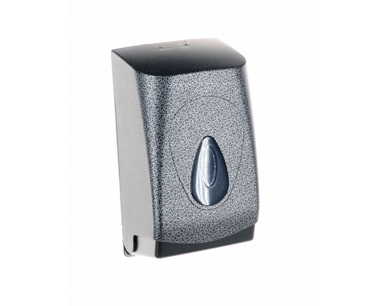 Pojemnik wykonany z wysokiej jakości tworzywa ABS o pojemność do 400 szt. listków papieru. Dostosowany do użytkowania z papierem toaletowym w listkach. Zaopatrzony w ozdobne, ciemnoszare okienko umożliwiające kontrolę ilości papieru w pojemniku. Odporny na działanie UV. Pojemnik zamykany na kluczyk.