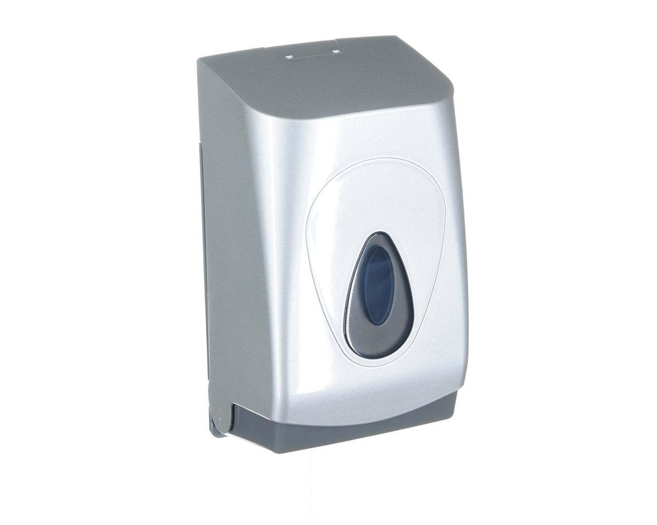 Pojemnik wykonany z wysokiej jakości tworzywa ABS o pojemność do 400 szt. listków papieru. Dostosowany do użytkowania z papierem toaletowym w listkach. Zaopatrzony w ozdobne, ciemnoszare okienko umożliwiające kontrolę ilości papieru w pojemniku. Odporny na działanie UV. Pojemnik zamykany na kluczyk.