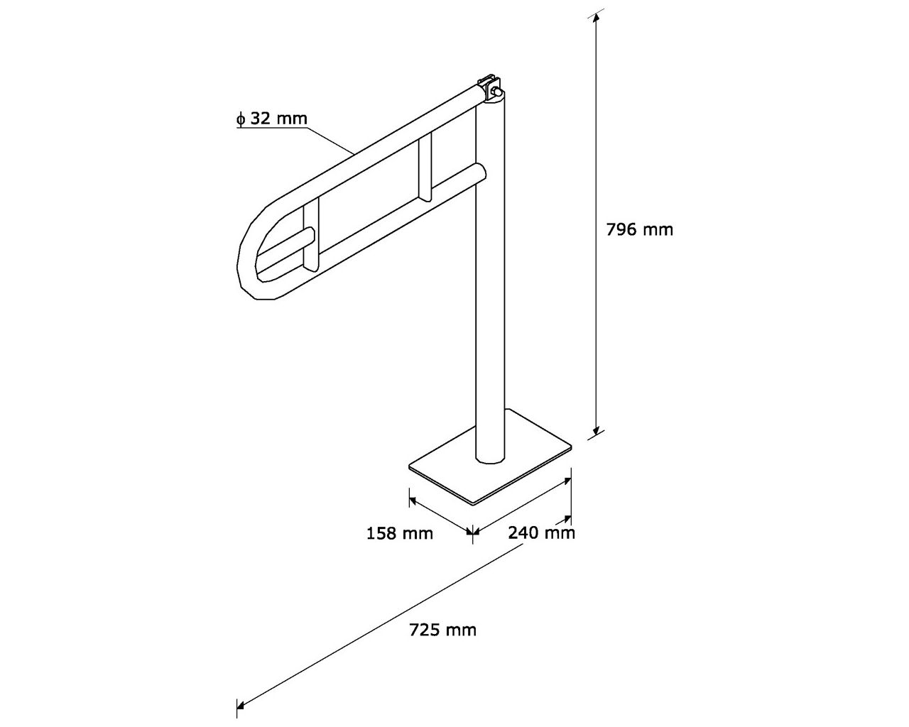 Poręcz uchylna łukowa 600 mmmontowana do podłogiz uchwytem na papier toaletowy