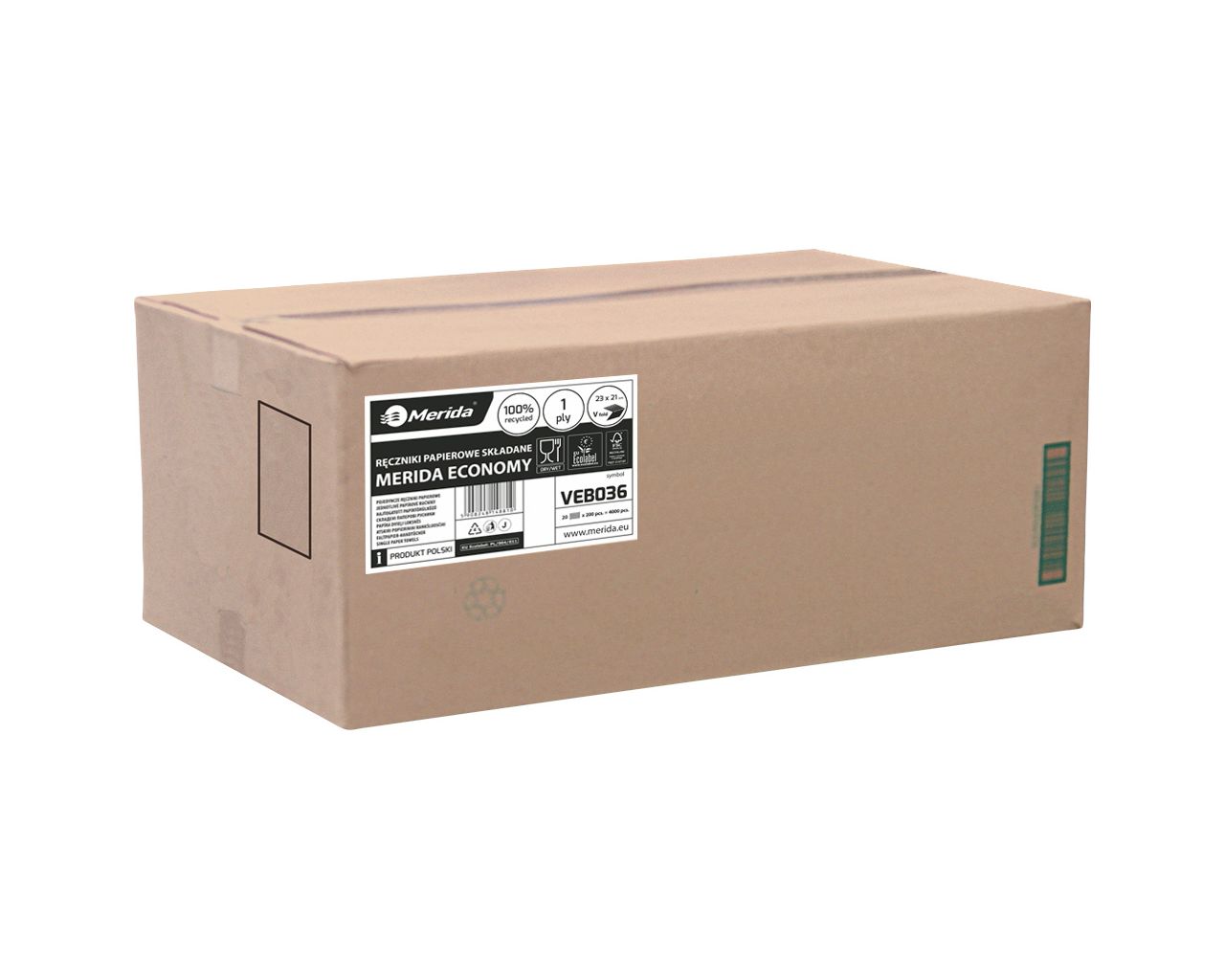 Ręczniki papierowe składane w VMERIDA ECONOMY ECOLABEL, jednowarstwowe, białekarton 4000 szt.