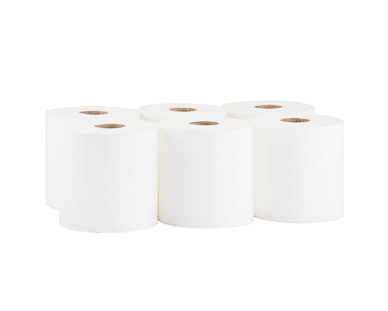 Ręczniki papierowe w roli MERIDA TOP CENTER PULL MAXIbiałe, średnica 20 cm , długość 320 m, jednowarstwowe, zgrzewka 6 rolekECOLABEL