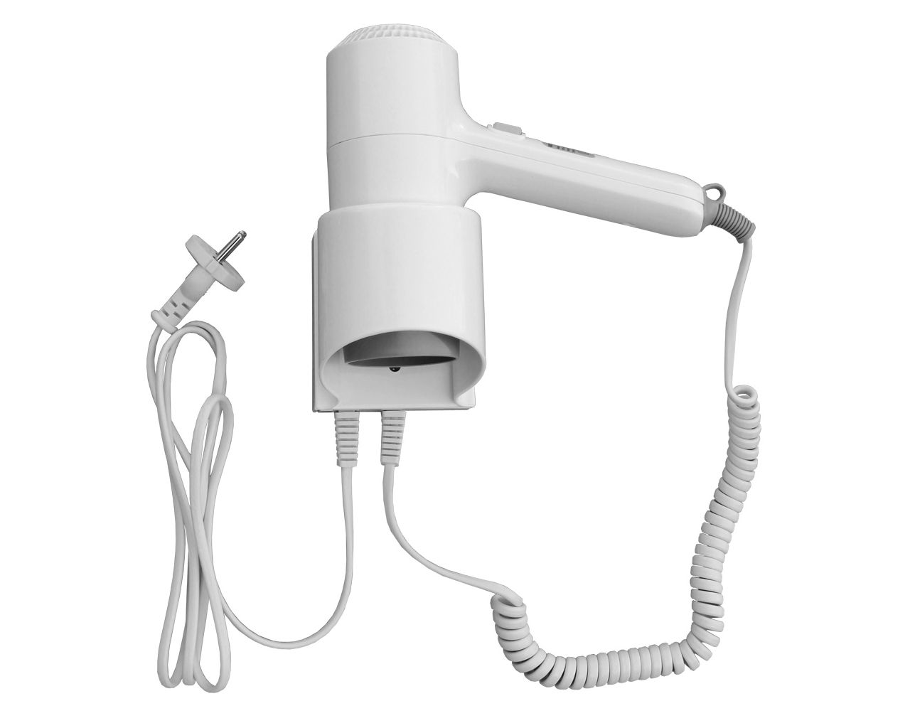 Elegancka suszarka do włosów, wykonana z wytrzymałego tworzywa sztucznego. Przeznaczona do stosowania w łazienkach domowych, hotelowych, w pensjonatach itp. Posiada włącznik z możliwością ustawienia mocy i prędkości wypływu powietrza. Suszarka posiada w komplecie uchwyt ścienny, który umożliwia jej zawieszenie. W uchwycie znajduje się wyłącznik, który powoduje automatyczne wyłączenie suszarki po jej odwieszeniu. Suszarka wyposażona jest w przewód zasilający z wtyczką, daje to możliwość bardzo łatwego montażu.