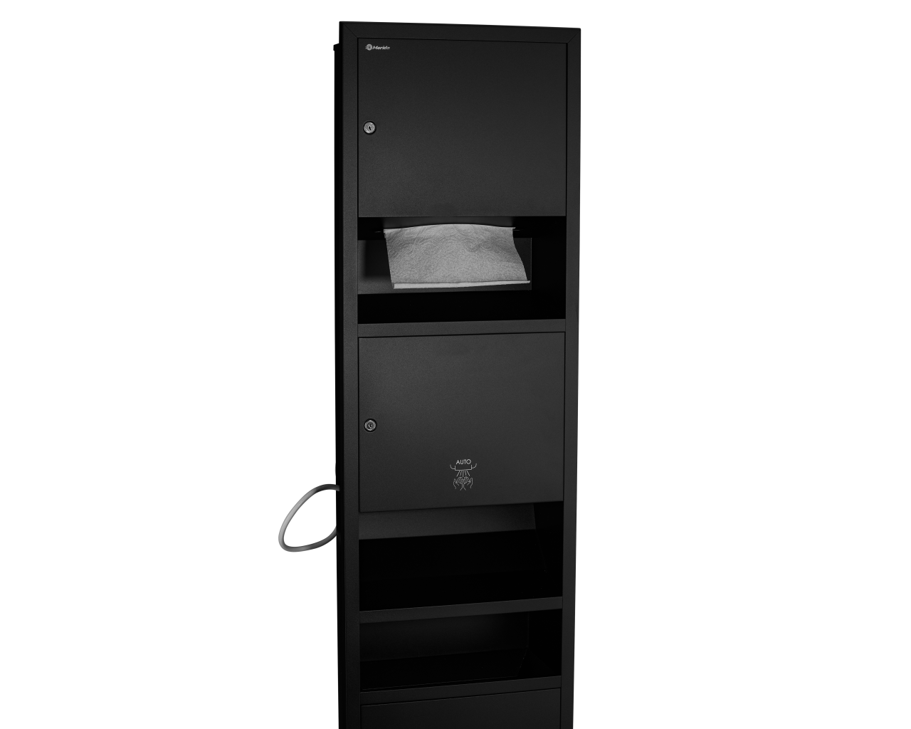 Wnękowy pojemnik na ręczniki pojedyncze z suszarką do rąk i koszem MERIDA STELLA BLACK LINE