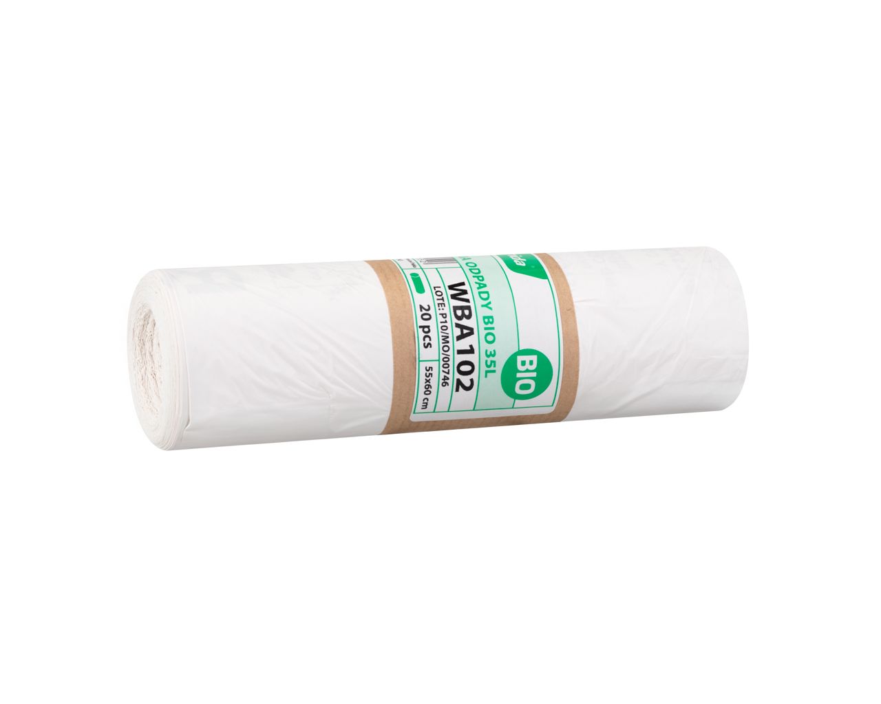 Worki biodegradowalne na śmieci 35 lMERIDA BIO, białe, 55×60 cmrolka 20 szt.