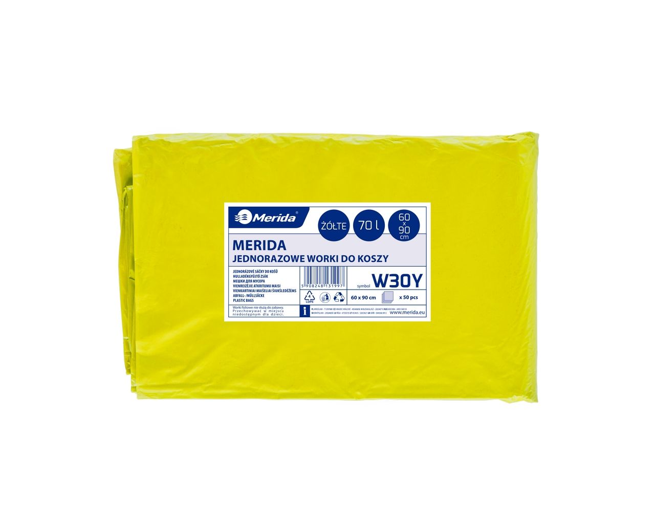 Worki na śmieci 70 lMERIDA CLASSIC, żółte, 60×90 cmpaczka 50 szt.