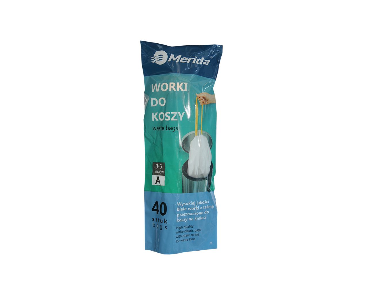 Worki na śmieci z taśmą zapachowe 3-6 lMERIDA TOP, białe, 40×45 cmrolka 40 szt.