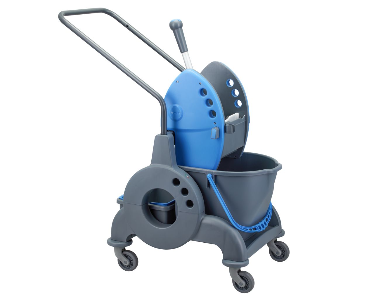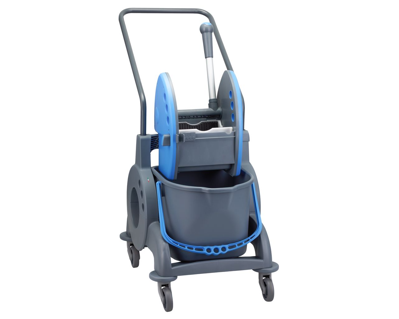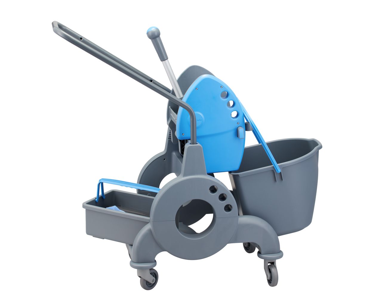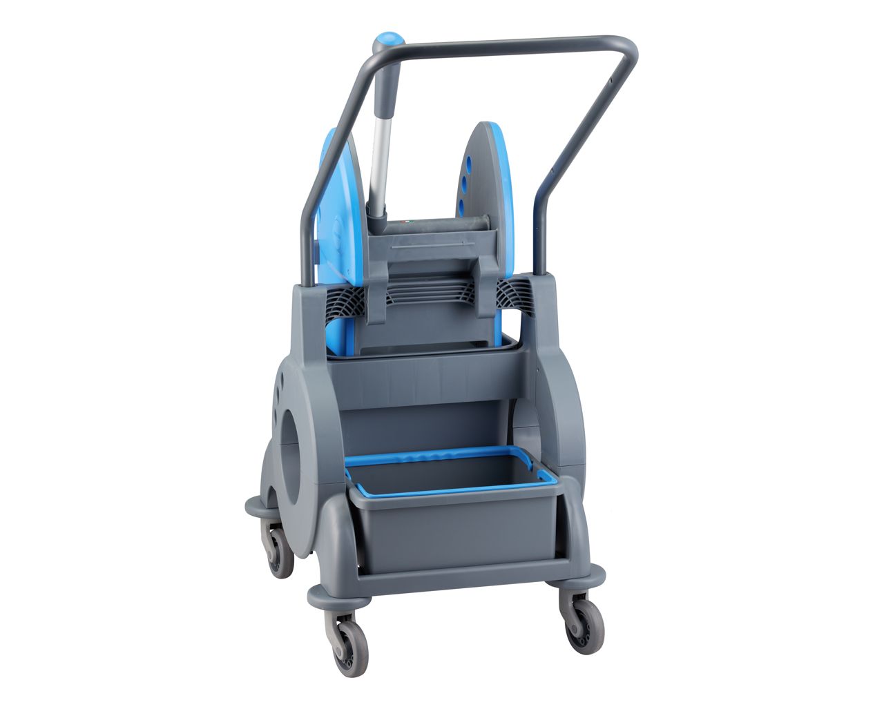 – wyposażony w wiadro o pojemności 15 litrów i kuwetę o pojemności 8 litrów (możliwa jest praca w systemie wózka dwuwiadrowego)