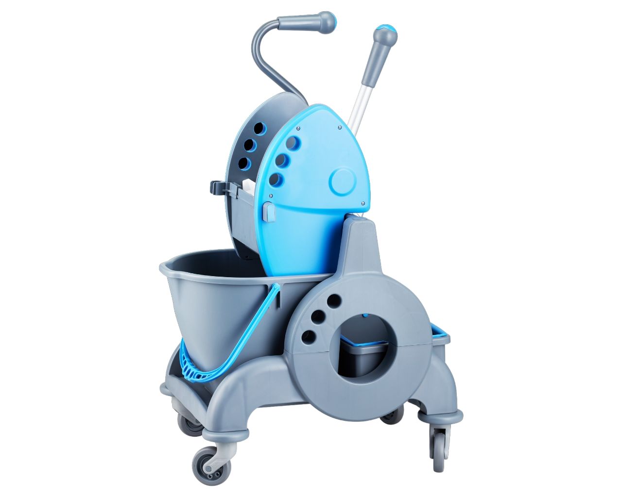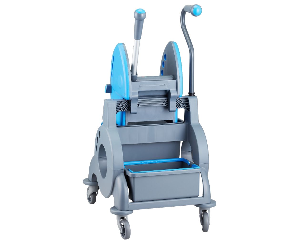 – szczękowa prasa do wyciskania mopów pozwala na dokładne usunięcie nadmiaru wody bez nadmiernego wysiłku