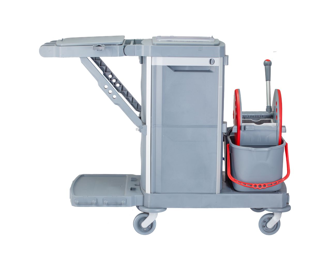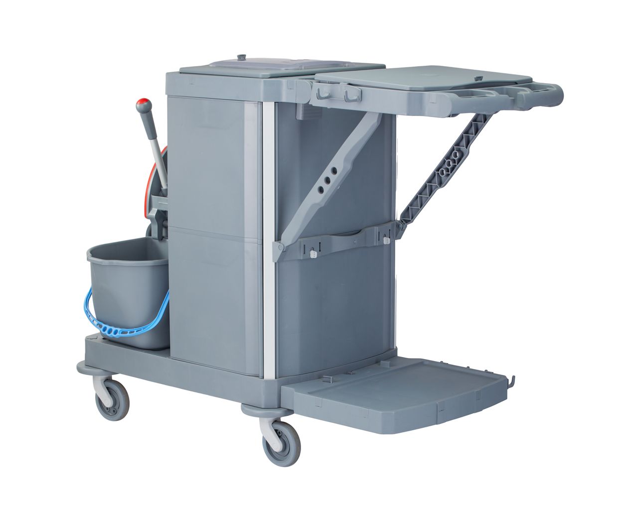 Wózek serwisowy do sprzątaniaMERIDA OPERA, 2 x wiadro 15 l, kuweta 20 l, kuweta 40 l, 3 x wiaderko 7 luchwyt na worek 120 l z pokrywą